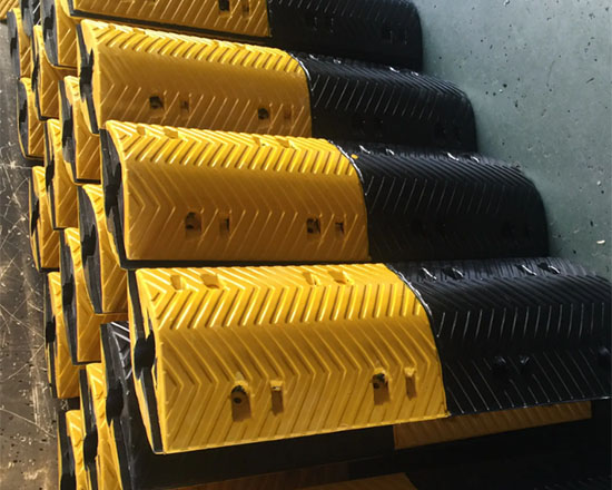三、塑料减速带:它结合了铸钢减速带和橡胶减速带的优点,造型美观实用,运输方便,安装方便,承载能力50t-150t,性价比高。